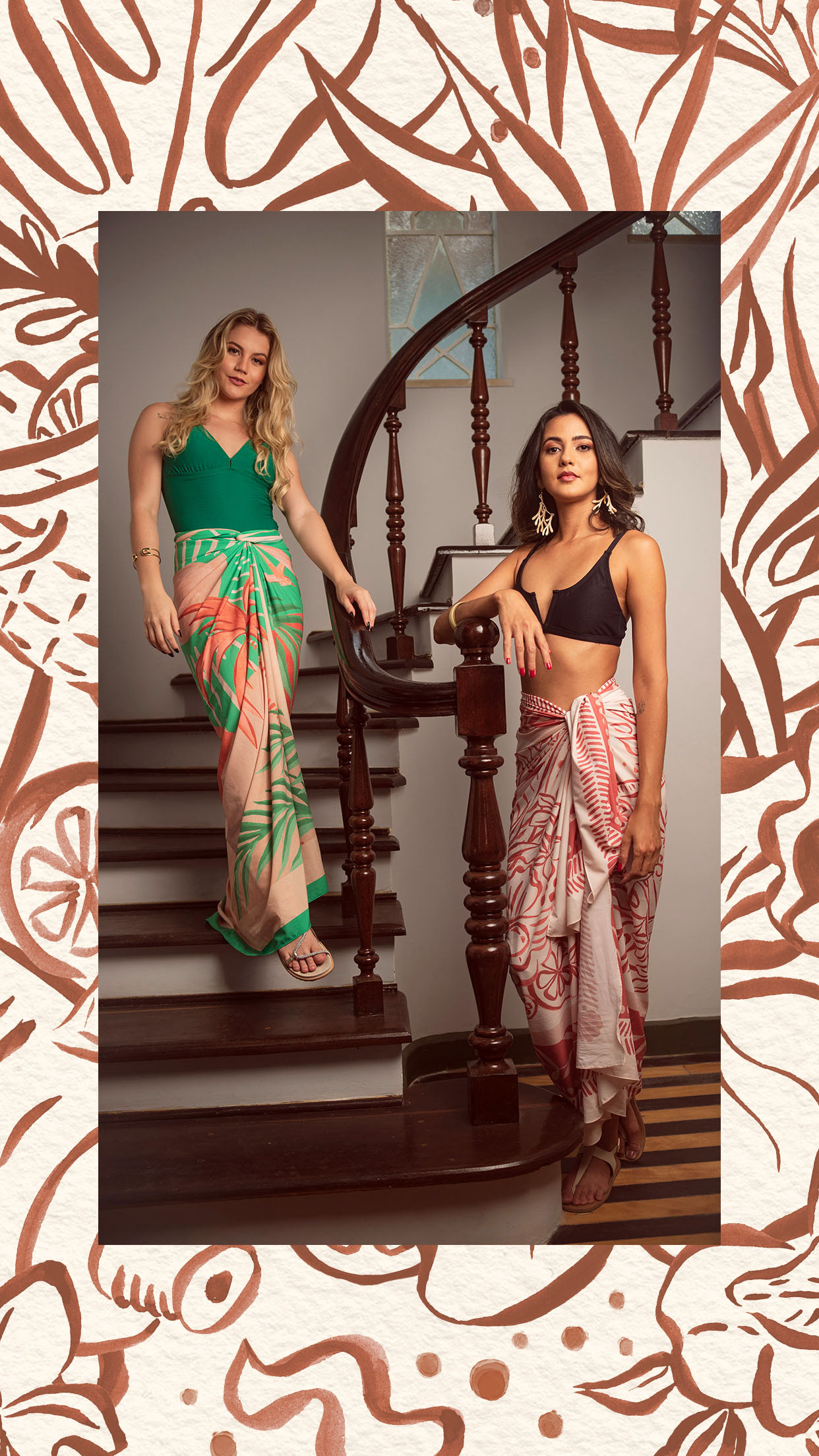 Ilustrações Pintadas à mão em guache, aquarela e nanquim e editadas digitalmente. Impressão digital no tecido.
