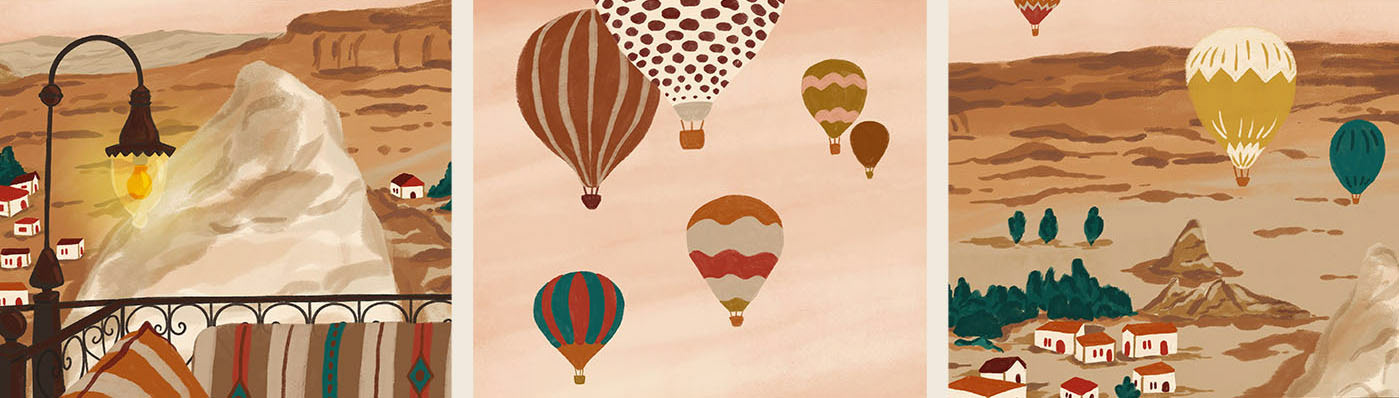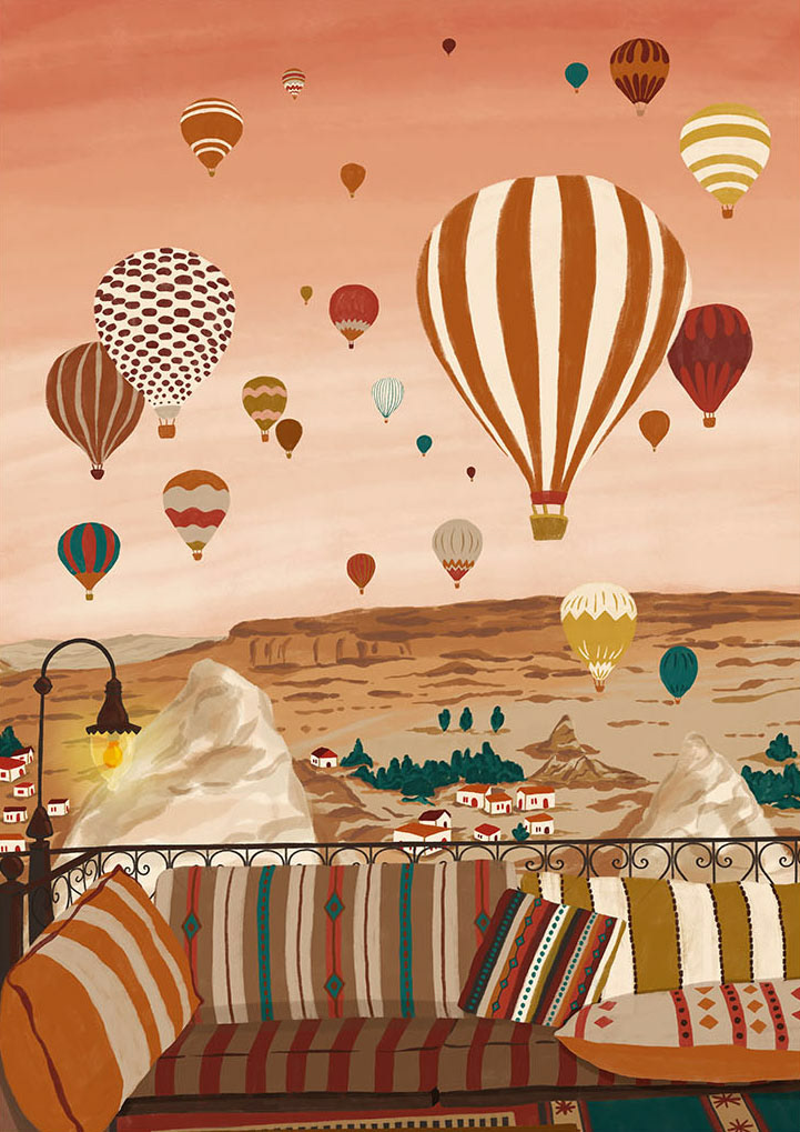 Ilustração desenvolvida para produtos de decoração da marca Disconnect Home, com o tema: Balões da Capadócia.